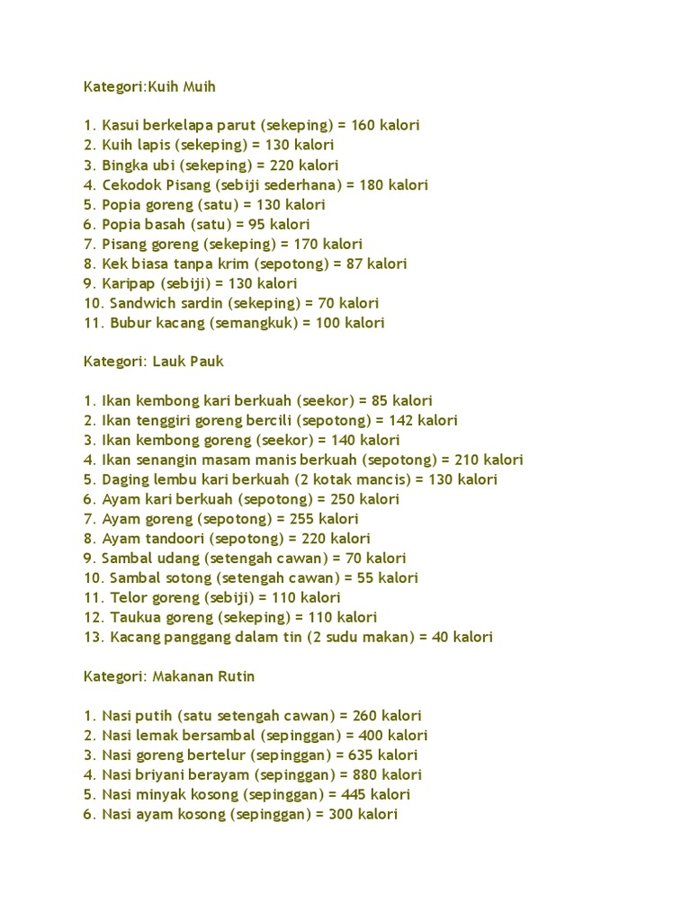 Roti putih (2 keping) = 156 kalori. Pau ayam (sebiji) = 203 kalori 14. Royco cream of chicken 58g royco sup krim ayam terbuat dari bahan bahan berkualitas untuk penyajian sup yang lezat. Sup untuk menurunkan berat badan, jika ada waktu yang lama, dapat menyakiti orang yang diet sup ayam resep diet : Emping jagung kosong (secawan) =160 kalori. Peha ayam goreng (satu) = 130 kalori 2. Emping jagung kosong (secawan) =160 kalori. Emping jagung kosong (secawan) =160 kalori. Kentang lecek (satu tub kecil) = 90 kalori 4. Kalori adalah satuan unit kandungan panas atau energi (kamus medis medilexicon). Kalori dapat ditemukan di hampir semua jenis makanan dan minuman. Nasi ayam kosong (sepinggan) = 300 kalori 7. Mee goreng kosong (sepinggan) = 660 kalori.